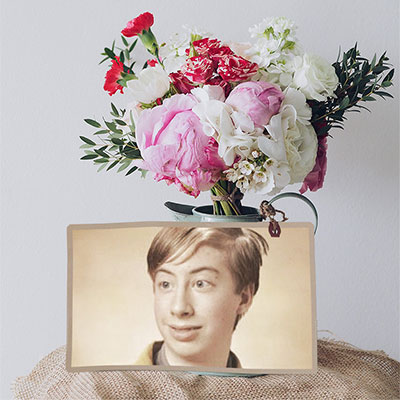 Photo effect with a bouquet of flowers from garden. Just flowers and a photo below them. This is a clear way to let a person know about your feelings.