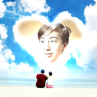 This photo effect is full of romance. What can be more romantic than seeing your beloved in the shape of a cloud in the blue blue sky.