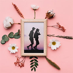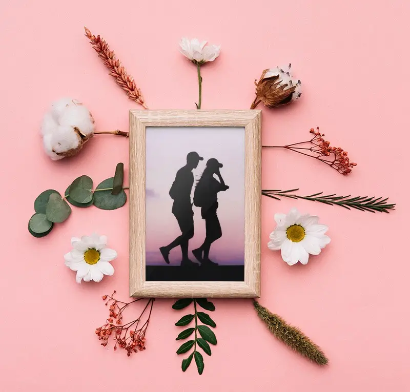 Photo frame on the pink wall