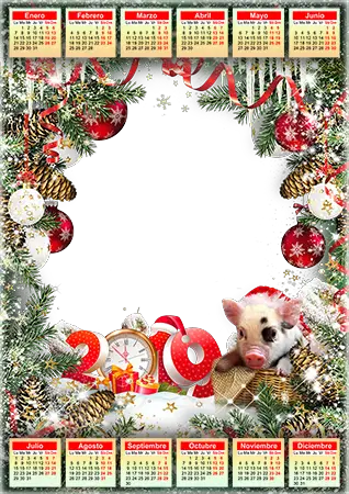 Marco de fotos - Calendar 2019. Cute piggy