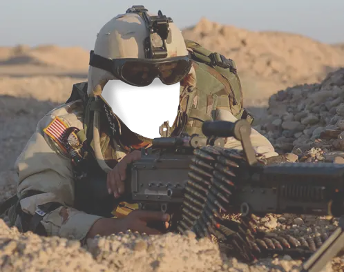 Interesting photo face template "Soldier" affords a good chance to dress a costume and look at yourself from a distance.