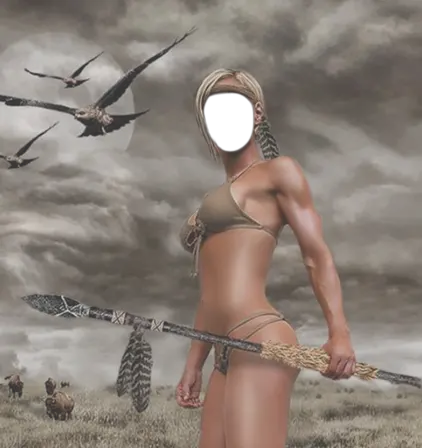 Nice face effect "Wild amazon" provides you with a chance to dress a garb and look at yourself from a distance.
