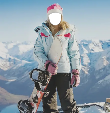 Interesting photo face template "Girl snowboarder" affords a perfect chance to dress a costume and look at yourself from a distance.