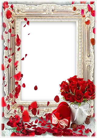Enjoy and add feelings of true love via photo frame "Red hearts and red roses" to your photo