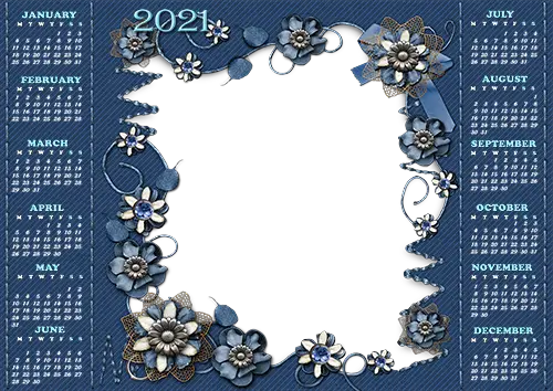 Foto rāmji - Calendar 2021. Vintage blue flowers