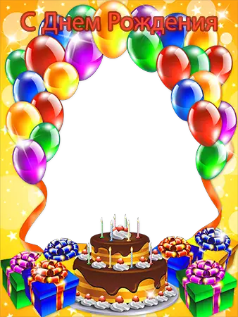 Обязательно используйте торжественную онлайн рамочку для фото "Birthday cake with balloons" к фотографии сделанной на Дне Рождения.