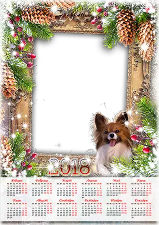 Узнайте как сделать исключительный персональный календарь с вашим фото применяя фоторамку "Calendar 2018. Lights and a dog".