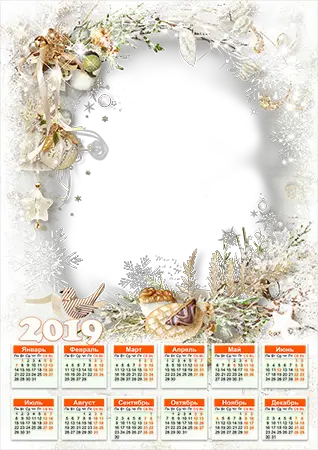Узнайте как сделать неподражаемый онлайн календарь на весь год с вашим фото выбирая фоторамку "Calendar 2019. Vintage ornaments".
