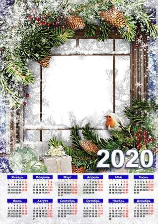 Сделайте исключительный онлайн календарь с своим фото выбирая фоторамку "Calendar 2020. Snowy window".
