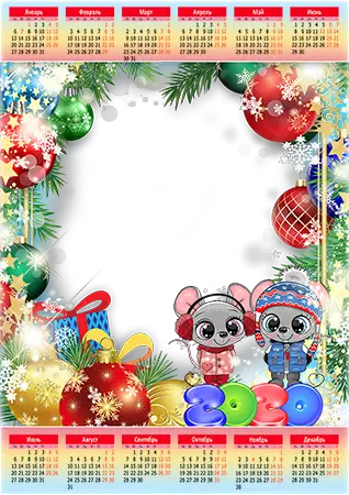 Сгенерируйте исключительный онлайн календарь с вашим фото используя фоторамку "Calendar 2020. Two cute gray rats".