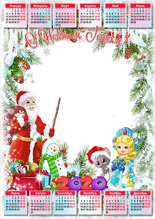 Узнайте как сделать неподражаемый онлайн календарь на целый год с вашим фото применяя фоторамку "Calendar 2020. Father Frost and Snow Maiden".