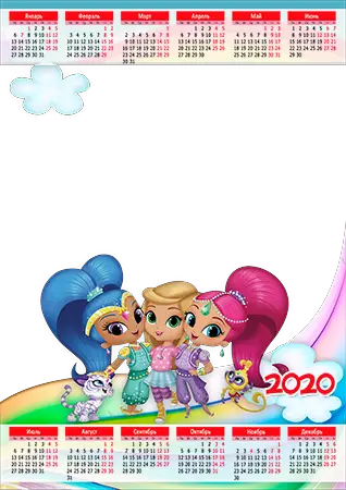 Узнайте как сделать исключительный онлайн календарь с своим фото выбирая фоторамку "Calendar 2020. Shimmer and Shine".