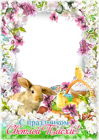 Мира во время Светлой Пасхи с бесплатной онлайн фоторамкой "Easter rabbit in bright flowers". Все легко, без смс и не требует регистрации.