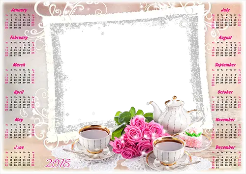 Дізнайтеся як зробити неповторний онлайн календар на цілий рік з вашим фото вибираючи фоторамку "Calendar 2018. Tea with a cake".