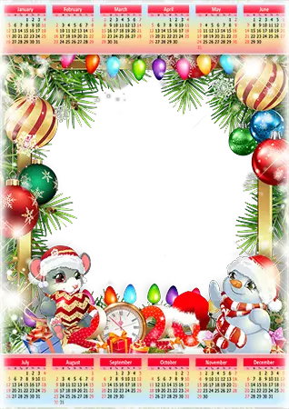 Зробіть винятковий онлайн календар на весь рік з своїм фото вибираючи фоторамку "Calendar 2020. Small cute rat".